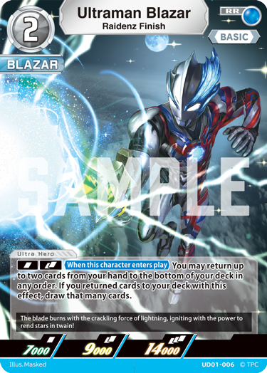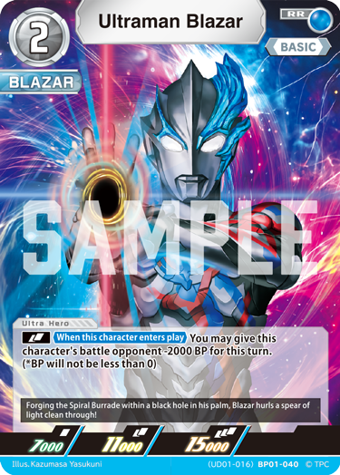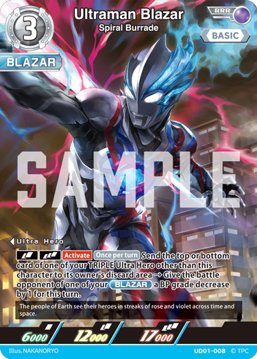 "UD01-008 Ultraman Blazar Spiral Burrade","UD01-017(BP01-043) Ultraman Blazar Spiral Burrade", and "UD01-020(BP02-086) Ultraman Blazar Tilsonite Sword" all have different activation conditions, but they share a key strength: each one of them can lower the opposing battle character's BP Grade.