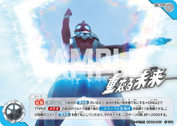 「挑戰賽」的優勝/隨機獎將是「重なる未来 (交會的未來)」。取自「超人力霸王奧米加」最終回中,宙人與光成合而為一所誕生的超人力霸王奧米加施放最後一擊的高潮場景。
