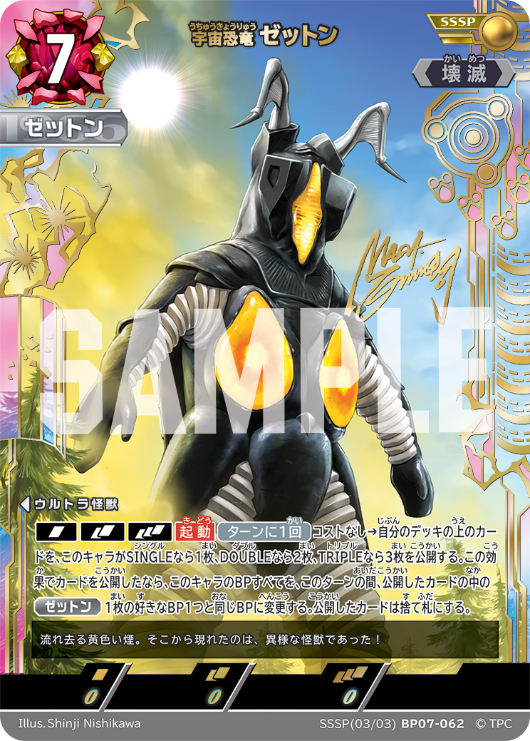 そして今回、なんと!西川伸司さんに、SSSPのイラストを描き下ろしていただきました。ゼットンが登場した瞬間の、あの圧倒的な絶望をぜひカードでも体感してみてください。
