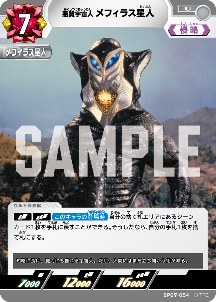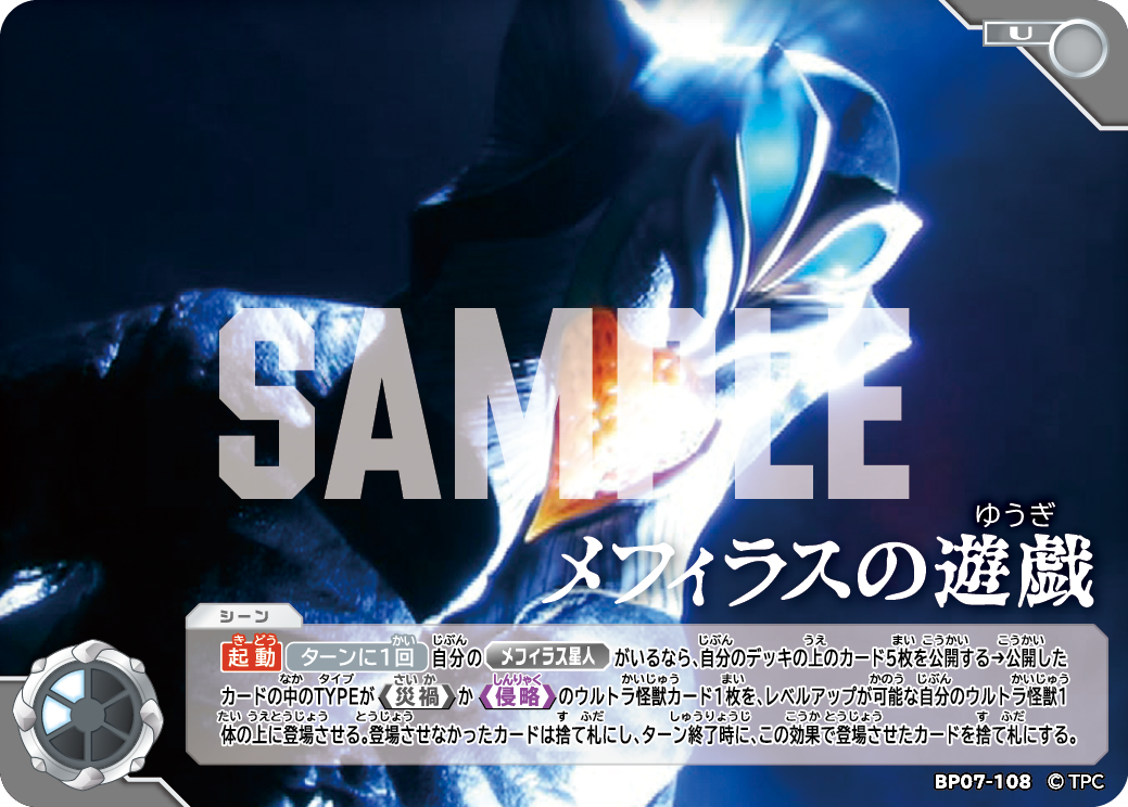 我々怪獣たちや、目障りなウルトラマンどものカードだ。レベルアップを駆使して、相手プレイヤーとBPを競い勝敗を決める。そう、ゲームの中心と言えるカードだ。 また、描き下ろしイラストをはじめとする大迫力の券面を通じて、遊びながら臨場感や怪獣の躍動感をUCG特有のゲーム性とともに感じとれる。 まるで怪獣軍団やウルトラマンどもの戦いに、君たちが力を貸しているような体験ができるのだ!