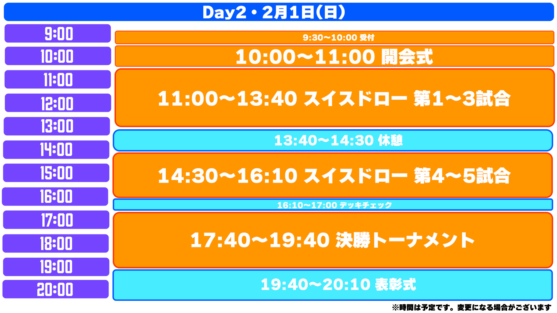 ※イベントのスケジュールは予定です。予告なく変更になる場合がございます。また当日の大会進行状況などにより変更となる場合もございます。