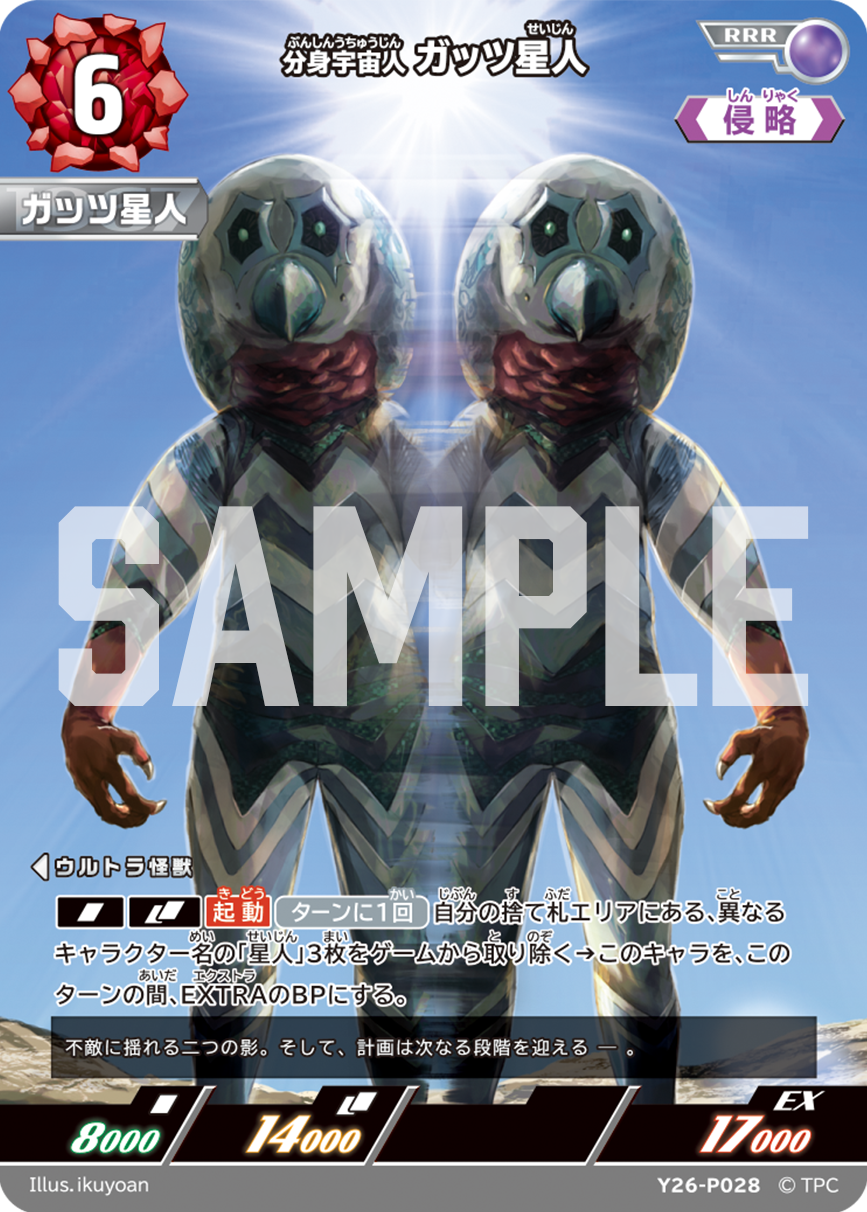 ボックス購入特典としてPRカード「分身宇宙人 ガッツ星人」を封入します。