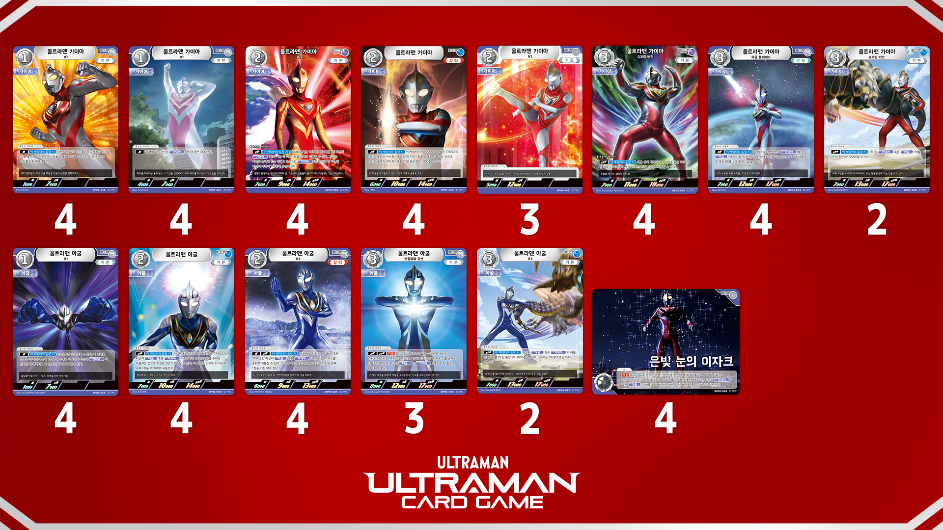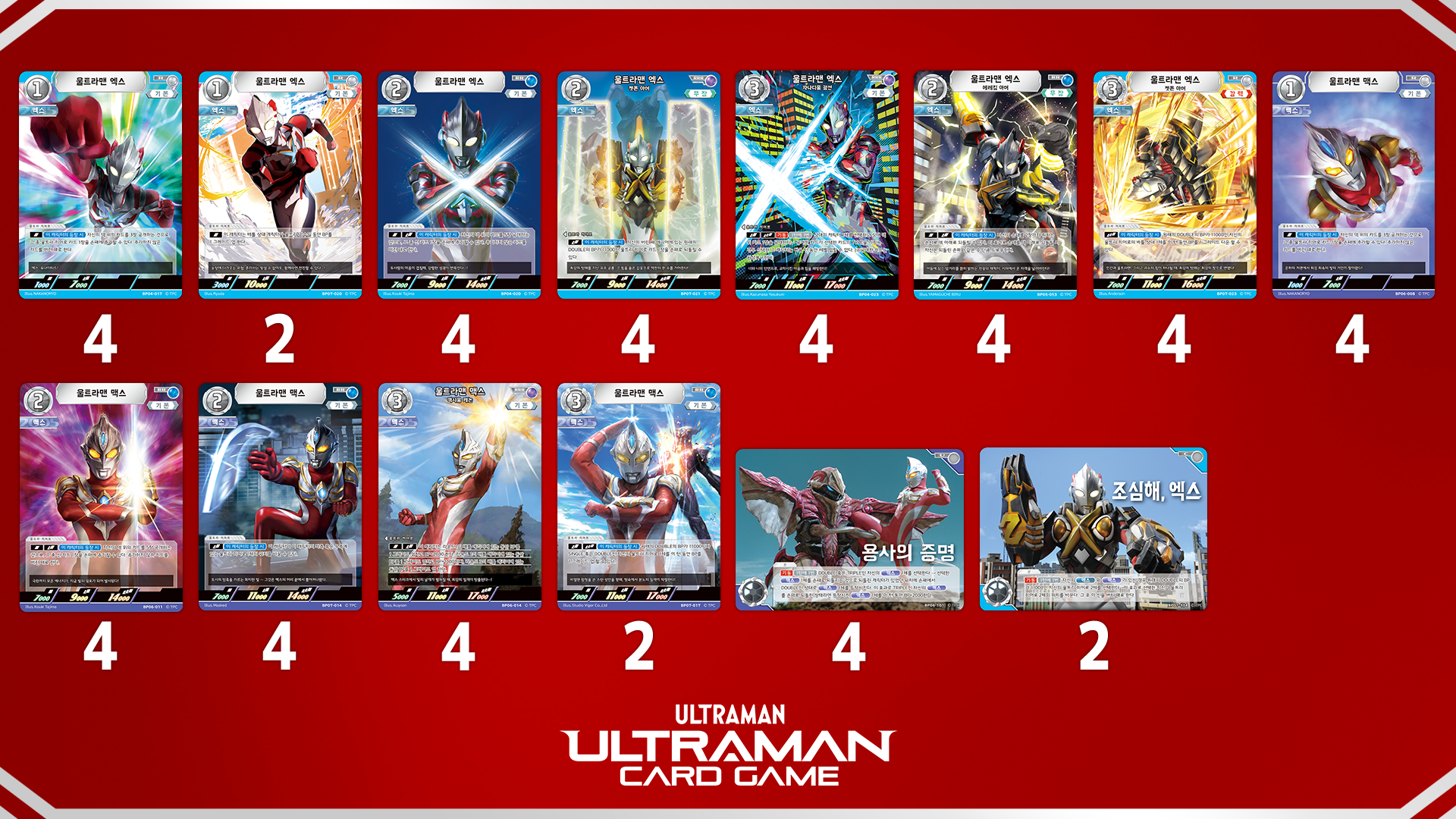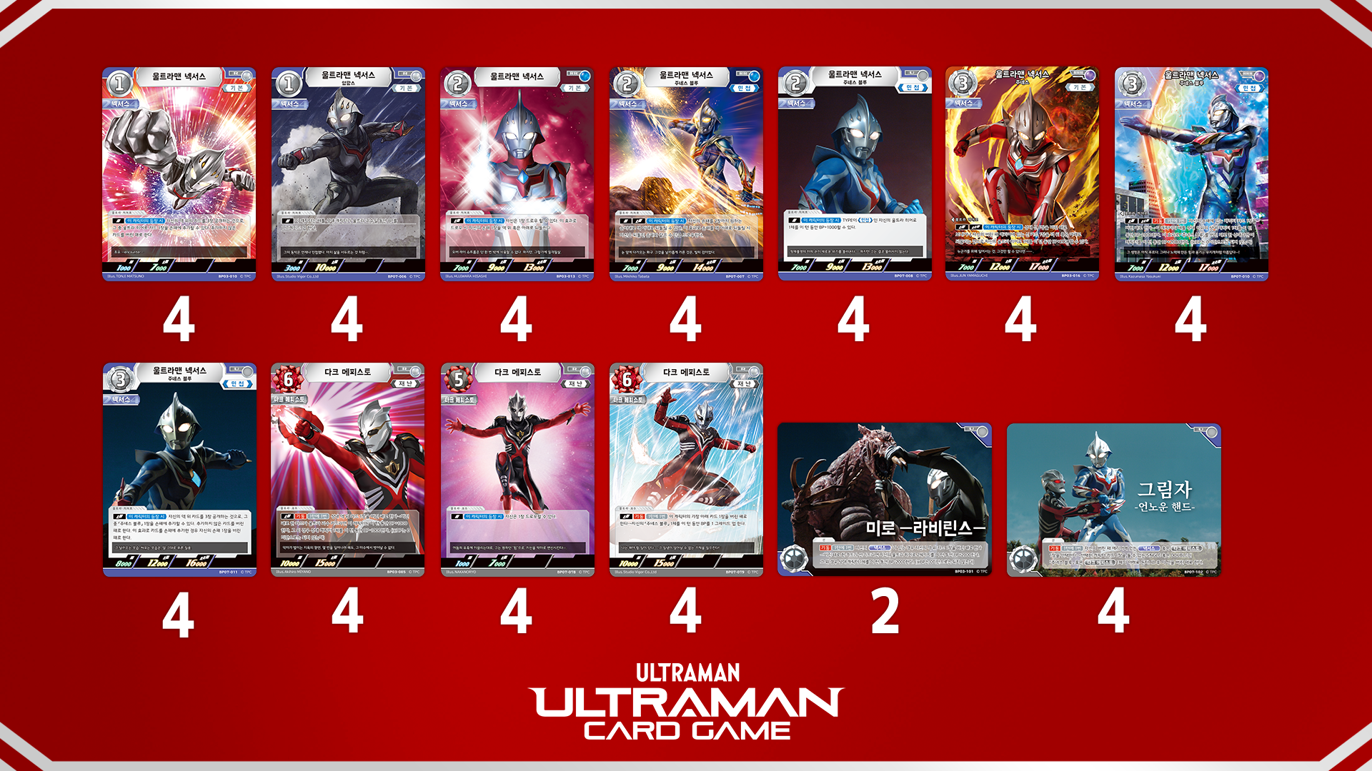 샘플 덱 리스트는 EXTRA가 BP 20000이 되는 카드를 최대한 투입하고, EXTRA의 BP를 가진 괴수와 궁합이 좋은 울트라맨 베리알을 조합한 압도적인 강적 콤비를 소개드립니다. 덱을 꼭 만들어보세요.