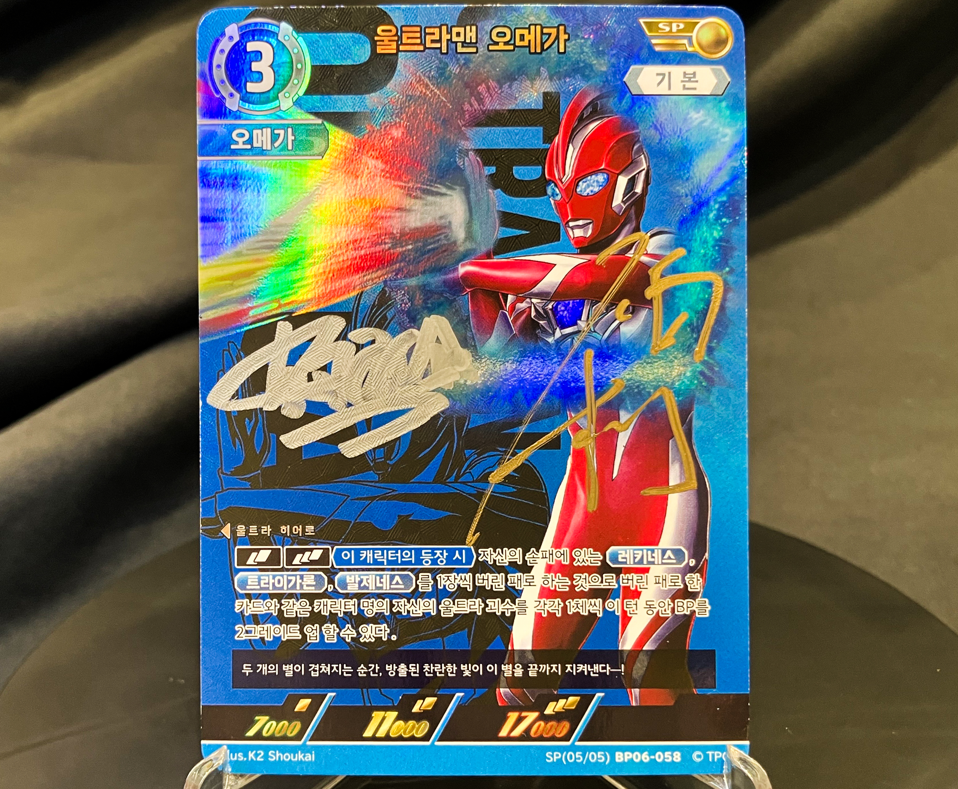 본 카드는 오하늘과 성광희가 일체화 된 울트라맨 오메가가, 필살기 "레티크류트 광선"을 발사하는 클라이맥스를 디자인한 특별한 카드입니다.