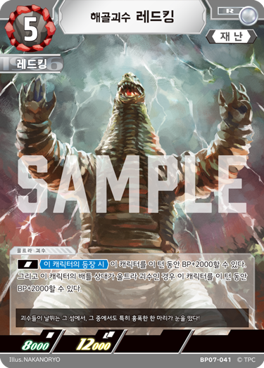 60주년을 맞는 『울트라맨』에서 처음 등장한 "해골괴수 레드킹"과 "악질우주인 메피라스 성인", 『울트라세븐』에서 "우주로봇 킹죠" 등 시리즈를 상징하는 괴수 캐릭터가 처음 등장합니다. 또한 인기 괴수 "우주공룡 젯톤"의 강력한 Lv.7 트리플 레어(RRR) 카드도 신규로 등장합니다.