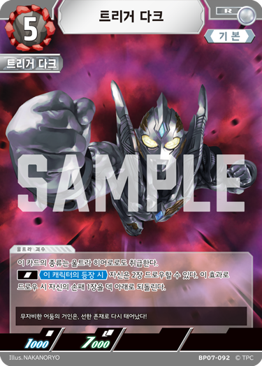 『울트라맨 트리거 NEW GENERATION TIGA』에 등장한 어둠의 거인 "요려전사 카르미라"도 이번 탄부터 등장합니다. 그 압도적인 전투력을 자랑하는 카드를 아름다운 일러스트와 극중 사진을 사용해 수록 예정입니다.