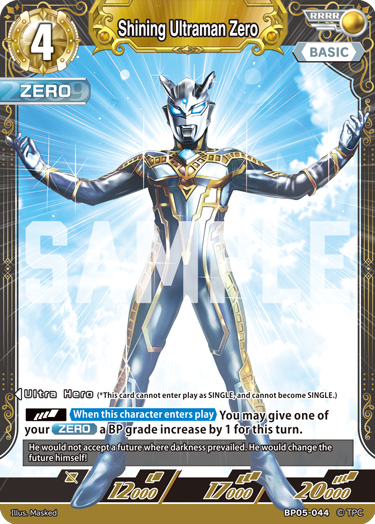 Ultraman Zero awakens from Zero Darkness in response to his comrades’ call, and takes on this brilliant new form! In addition to boasting high BP, it can increase the BP grade of other Zero on the field, enabling players to dramatically change the course of battle.