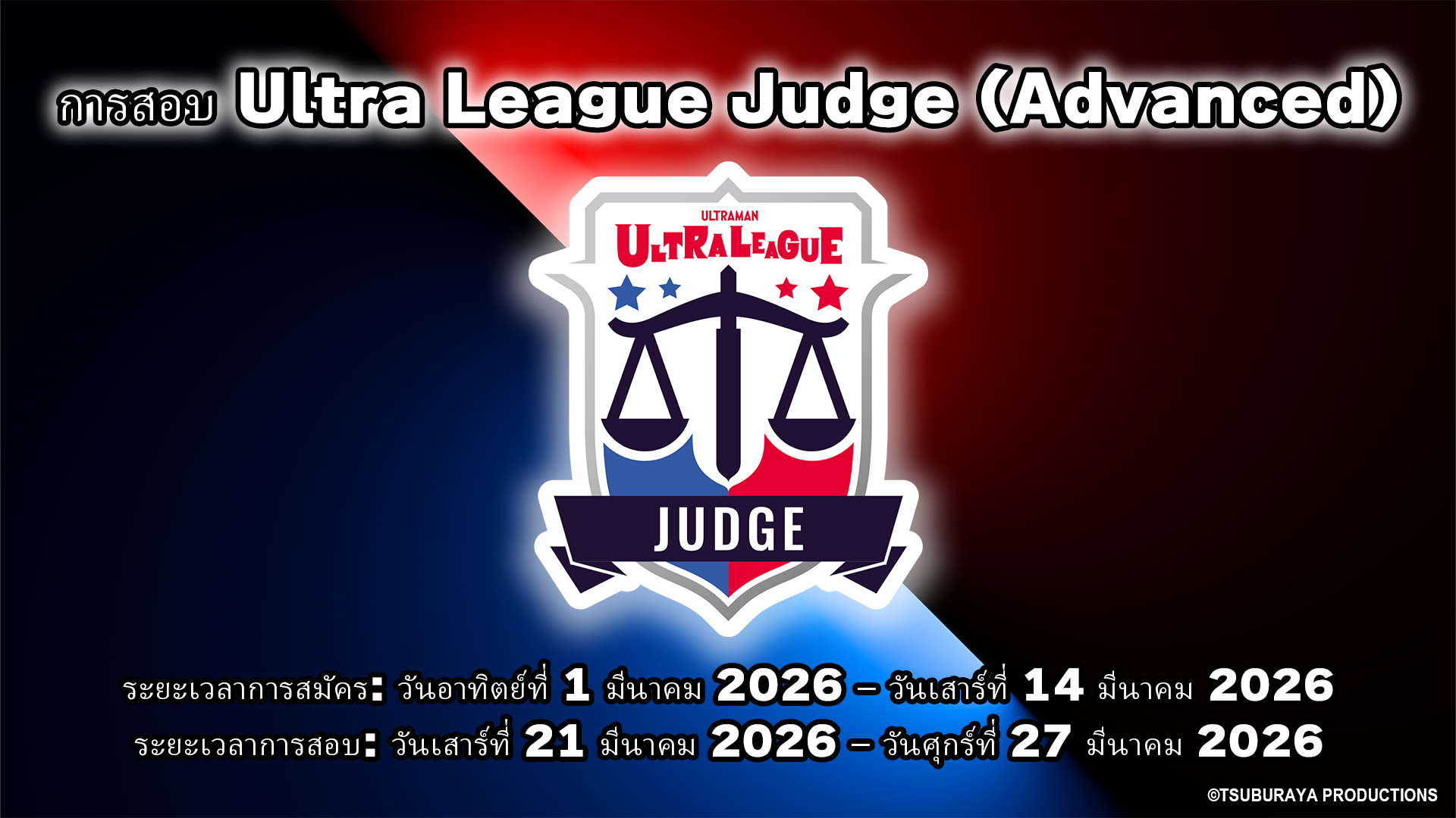 ULTRAMAN CARD GAME มีความยินดีที่จะประกาศ “Official Judge (Advanced) Exam” เพื่อสนับสนุนการบริหารจัดการแข่งขันระดับสูง และเพื่อส่งเสริมบรรยากาศการเล่นที่ยุติธรรมและราบรื่นสำหรับ Ultra Leaguers ทุกคน