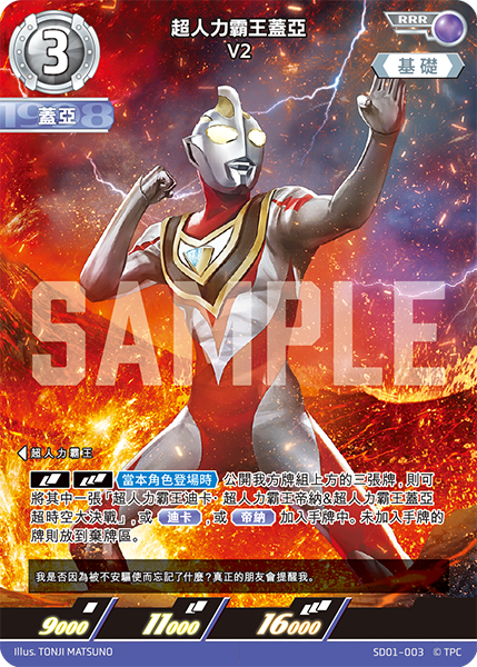 雖然我們不斷強調卡牌的強力,但您可能會想知道究竟有多強。讓我們來展示一下吧!我們將公開SD中的卡牌內容!首先,介紹SD01『超時空的英雄們』中的超人力霸王蓋亞V2。