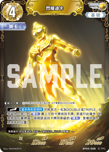 此外,RRRR “超人力霸王德卡強勁型” (BP05-074) 拋棄了等級3 的持續與啟動效果,換取一個強大的登場效果,可直接從牌組進行升級。
