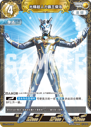 藉由新登場的 “超人力霸王傑洛 (RRR)” (BP05-041),你可以在兩個回合內讓自己的 BP +2000,並讓對手的 BP -2000,穩穩奪下勝利!