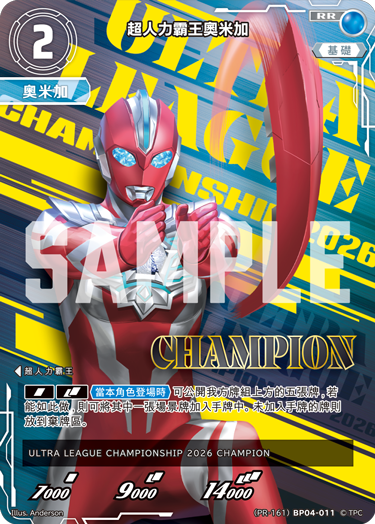 本次作為參賽獎勵的 PR卡,採用了人氣連載系列《超人力霸王奧米加》的設計!卡面描繪了超人力霸王奧米加擺出英雄姿態,施展Omega Slugger的場景。