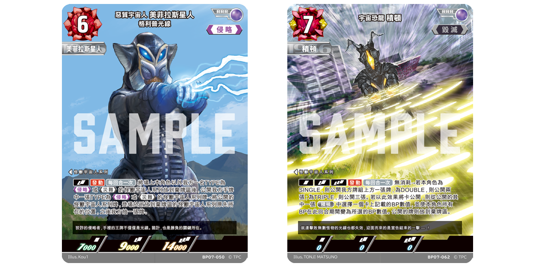 強化包第 07 彈 「大怪獸超進擊」 收錄來自《超人力霸王》系列的眾多怪獸與對手角色,陣容十分龐大。本彈將大幅提升怪獸牌組在戰略深度與構築自由度上的表現。