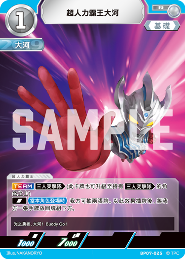 超人力霸王大河的卡牌具備本彈首次推出的全新效果 〈TEAM〉,當同一副牌組中編入多位英雄角色時,即可發動效果。