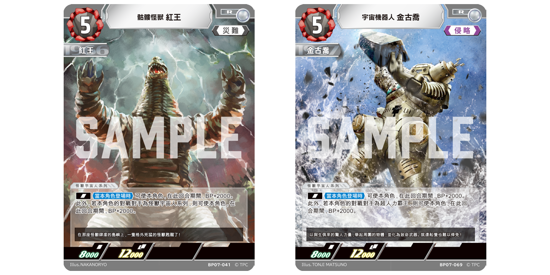 來自整個《超人力霸王》系列的經典怪獸,首次於卡牌遊戲中登場,包括: