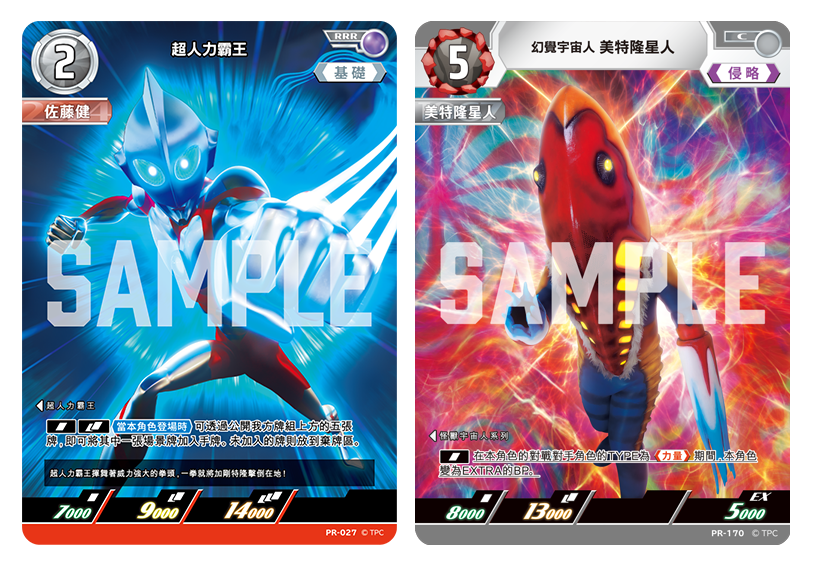 PR卡共有 2種設計,分別為 「超人力霸王 (Ultraman: 崛起)」 與 「幻覺宇宙人: 美特隆星人」 的卡牌,這兩張卡片此前尚未於遊戲的繁體中文版本中推出。