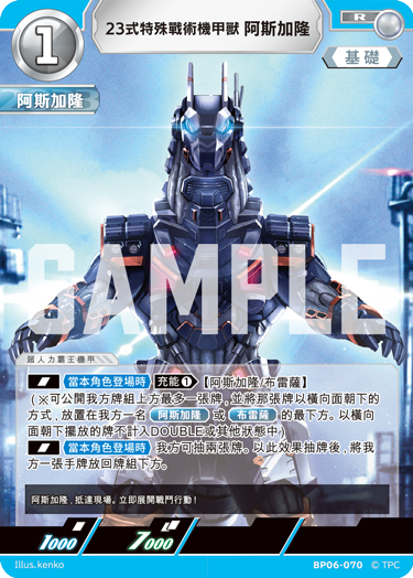 本商品收錄的「UD01-008 超人力霸王布雷薩 螺旋光矛」,與自 BP06 起採用新關鍵字能力「充能」的「BP06-070 223式特殊戦術機甲獣 阿斯加隆」有著極佳的相性!