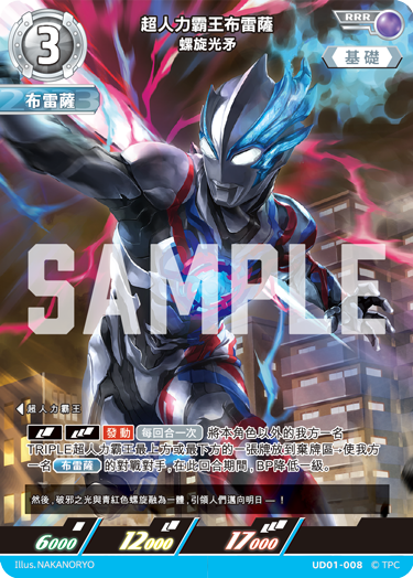 而「UD01-008 超人力霸王布雷薩 螺旋光矛」、「UD01-017(BP01-043)超人力霸王布雷薩 螺旋光矛」、「UD01-020(BP02-086)超人力霸王布雷薩 奇爾索輝石劍」雖然各自的發動條件不同,但全都具備 降低戰鬥對手等級 的效果,因此在登場的當回合極容易取得勝利。只要能順利集齊並升級到這些卡片,勝利便近在眼前!