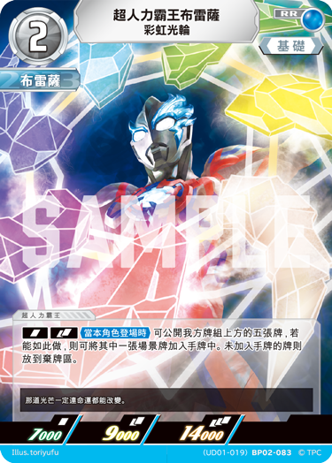 若你在開局時無法將 Lv.1 的超人力霸王放上場,也可以利用「UD01-006 超人力霸王布雷薩 雷電終結」的效果來更換手牌,藉此彌補不足。另外,BP05 內收錄的「BP05-002 超人力霸王迪卡 疾速型」同樣具有此效果,將其加入牌組也是相當不錯的選擇。