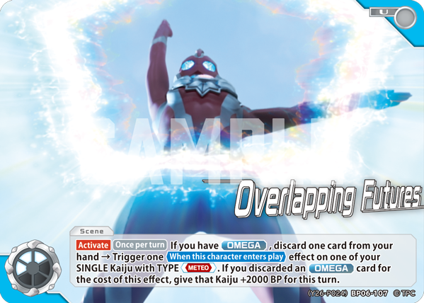 The Winner/Random Prize for “Challenge Match” tournaments will be “Overlapping Futures”. From the final episode of Ultraman Omega, the climactic scene where Ultraman Omega—formed by the fusion of Sorato and Kosei—delivers the final blow has been made into a card.